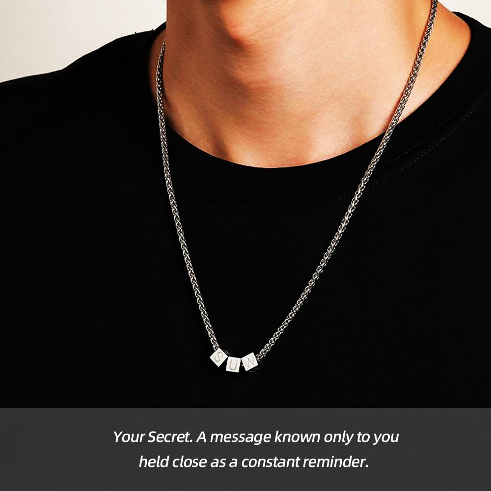 Custom Initial Necklace - Personalized Alphabet Cube Pendant in Stainless Steel